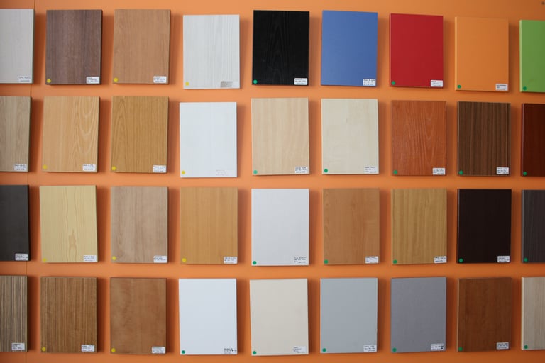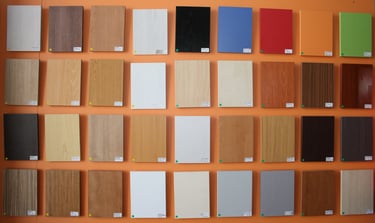Motivos y texturas de melamina (maderas oscuras, claras, lisas, o con vetas).